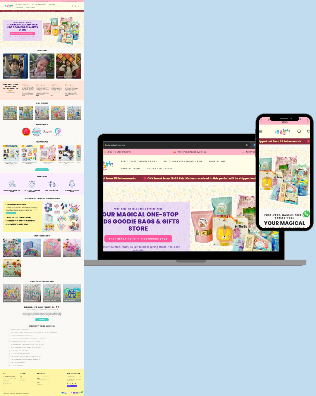 Bash Party Store is an e-commerce website offering a wide range of curated and customizable goodie bags, gifts, and party supplies primarily for children’s celebrations and events. The business focuses on creating a stress-free, joyful, and convenient shopping experience for parents and event planners by providing ready-to-gift packages or “Build Your Own Goodie Bag” options with customizable packaging and stickers.